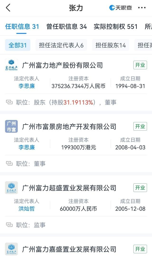 2025年2月,张力和李思廉的股份被债权人强制执行了3亿股,张力持股降到22.44%,李思廉26.31%。5月,张力的儿子张量因贷款纠纷被杭州法院禁出境。12月31日,富力公告境外重组方案还在谈,重组支持协议生效。