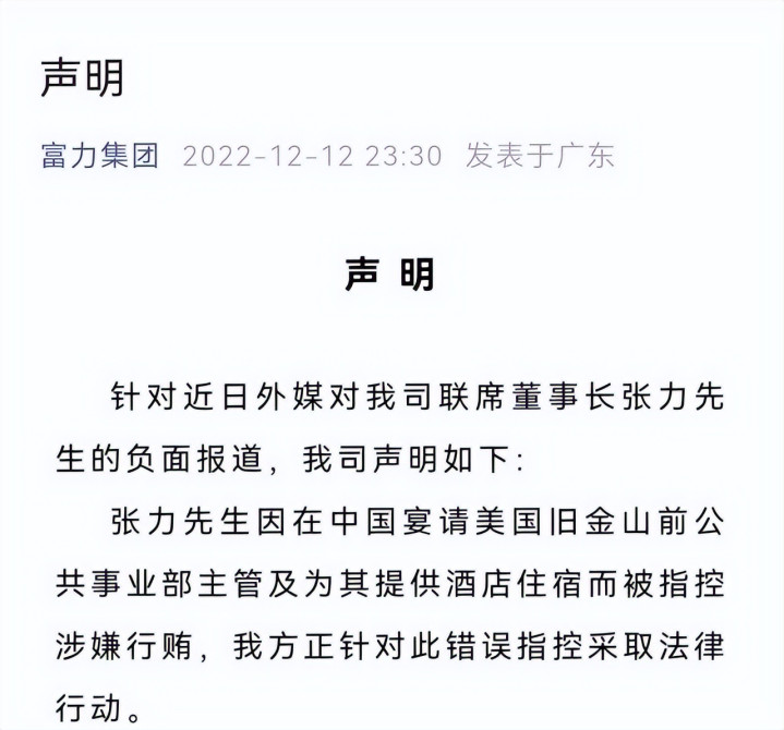 作为交换,努鲁帮忙推项目审批。2020年旧金山媒体报道了这事儿,说涉案开发商是富力,但其实Z&L是张力个人和关联方持有的,跟上市公司没关系。2021年12月17日,美国司法部公布努鲁腐败案细节,努鲁认罪,承认收了张力方面的贿赂,包括免费旅行和福利。